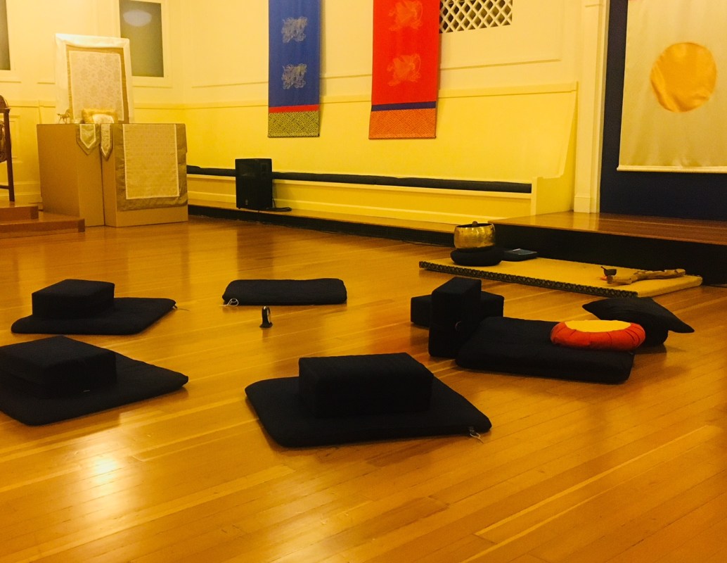 Once a month I come to this Shambala for seated meditation.